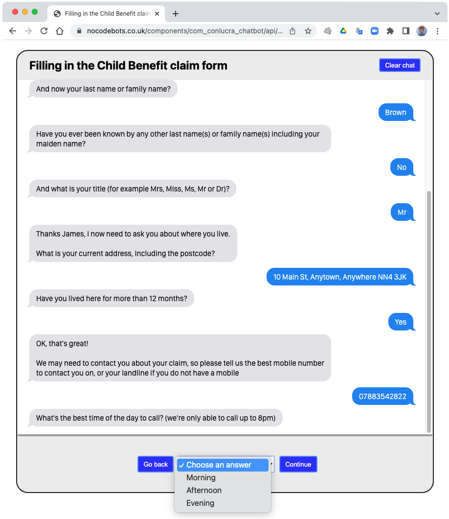 - Form-filling: customer information is gathered through an interactive conversation that only asks the necessary questions to correctly complete a template letter or official form.