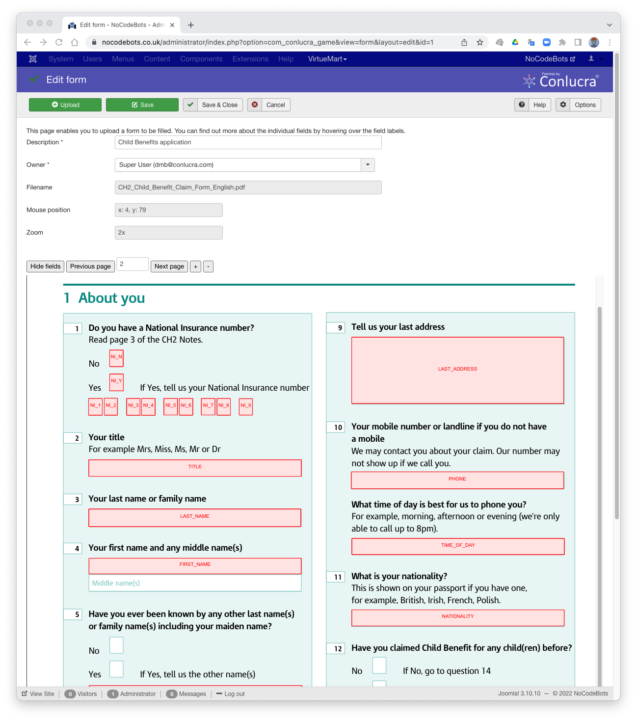 To see a live demo of a few answers being merged into an official form click Applying for Child Benefit.