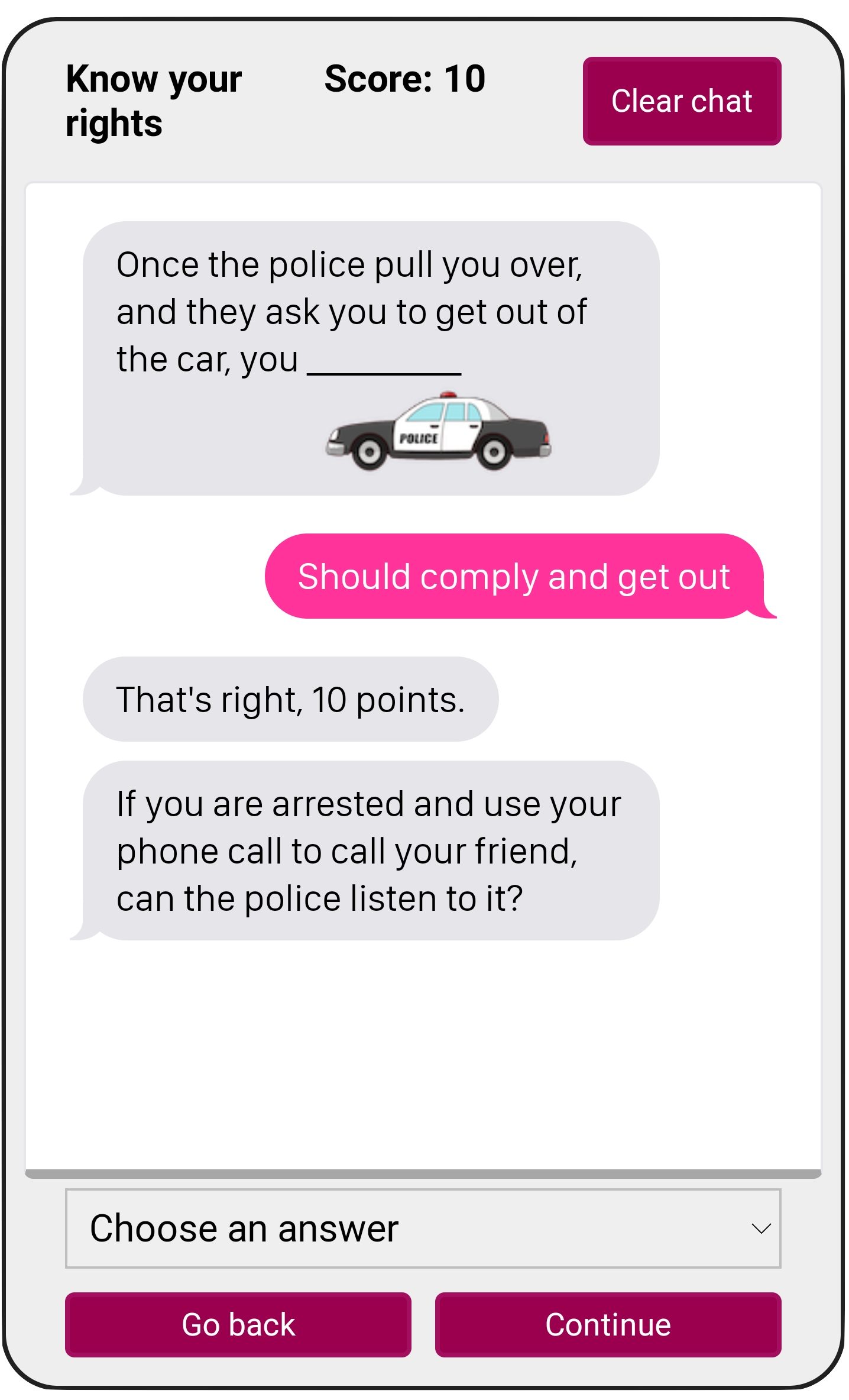 The mobile version of Quiz is shown below, and you can try this template out by clicking on Quiz - Know Your Rights.