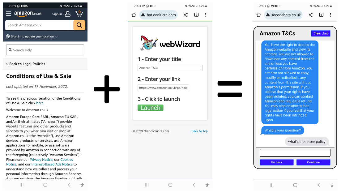 NoCodeBots is a "no-code" web-based application that allows you to build and hold a conversation with your users.
